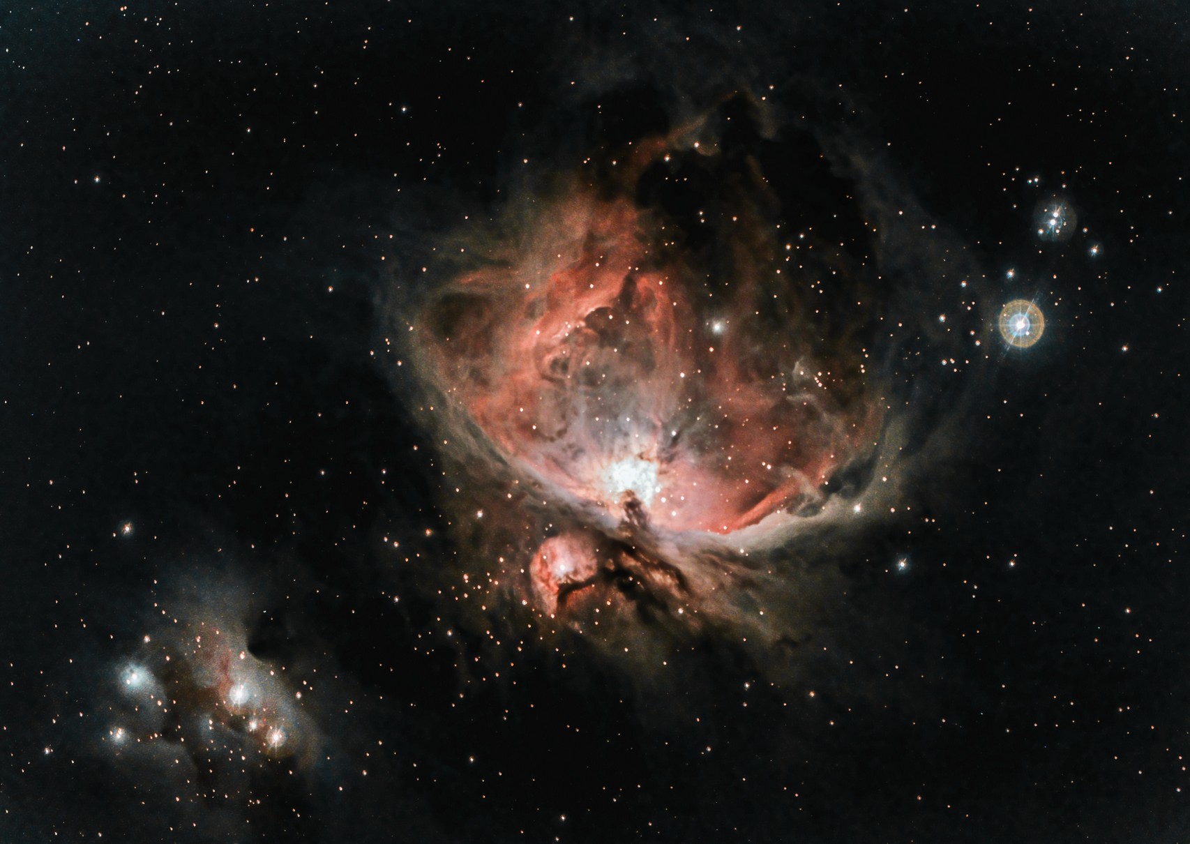 M42, et la nébuleuse du Bonhomme NGC1975 en bas à gauche