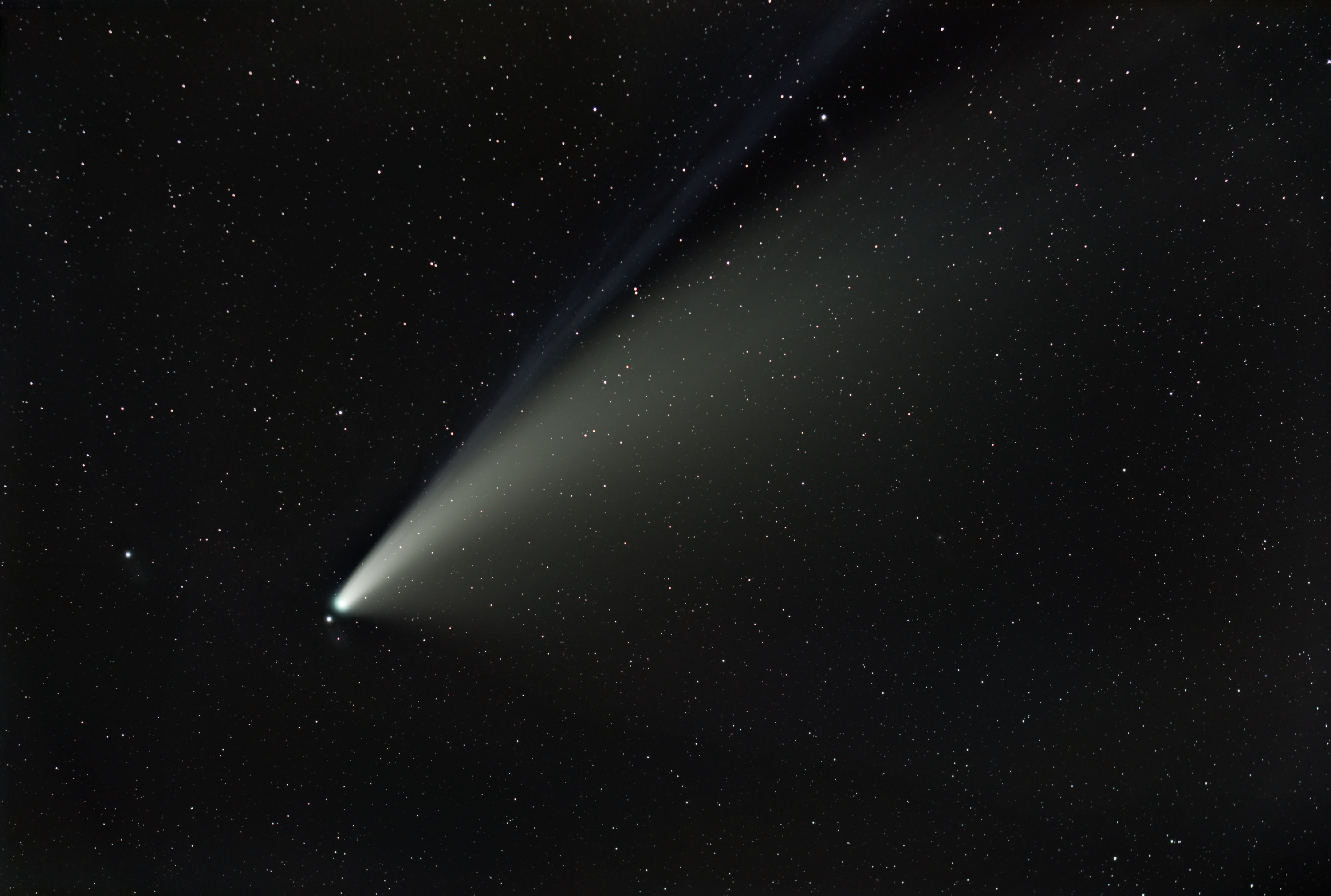 La comète se trouvait alors à 100 millions de Km de la terre (150 millions de Km étant la distance terre soleil), sa magnitude estimée ce soir là était proche de 4 (entre 6 et 7 fois moins lumineuse que lors du pic le 3 juillet 2020).