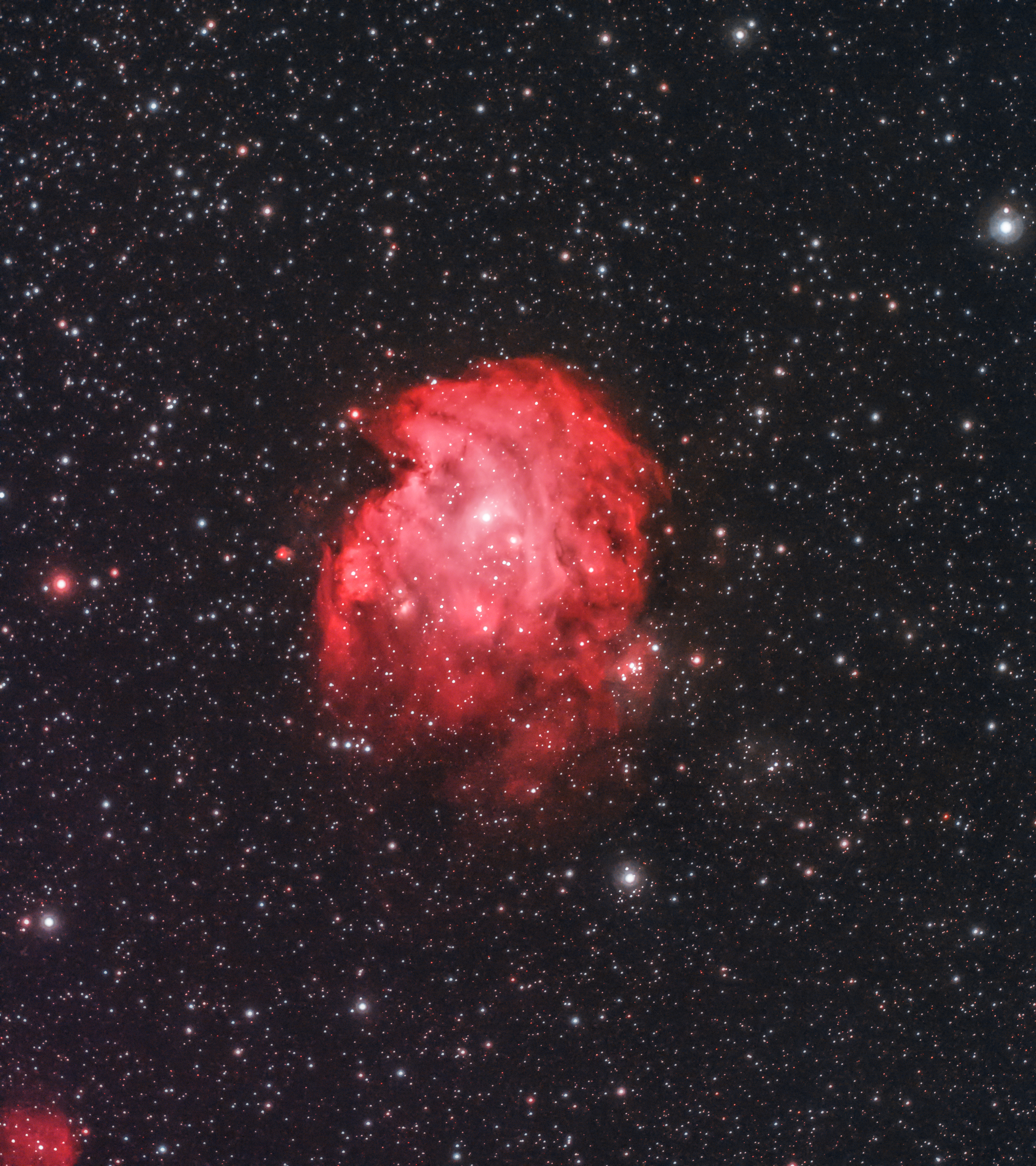 NGC 2174 est une nébuleuse en émission située dans la constellation d'Orion. NGC 2174 est aussi appelée nébuleuse de la Tête de Singe.