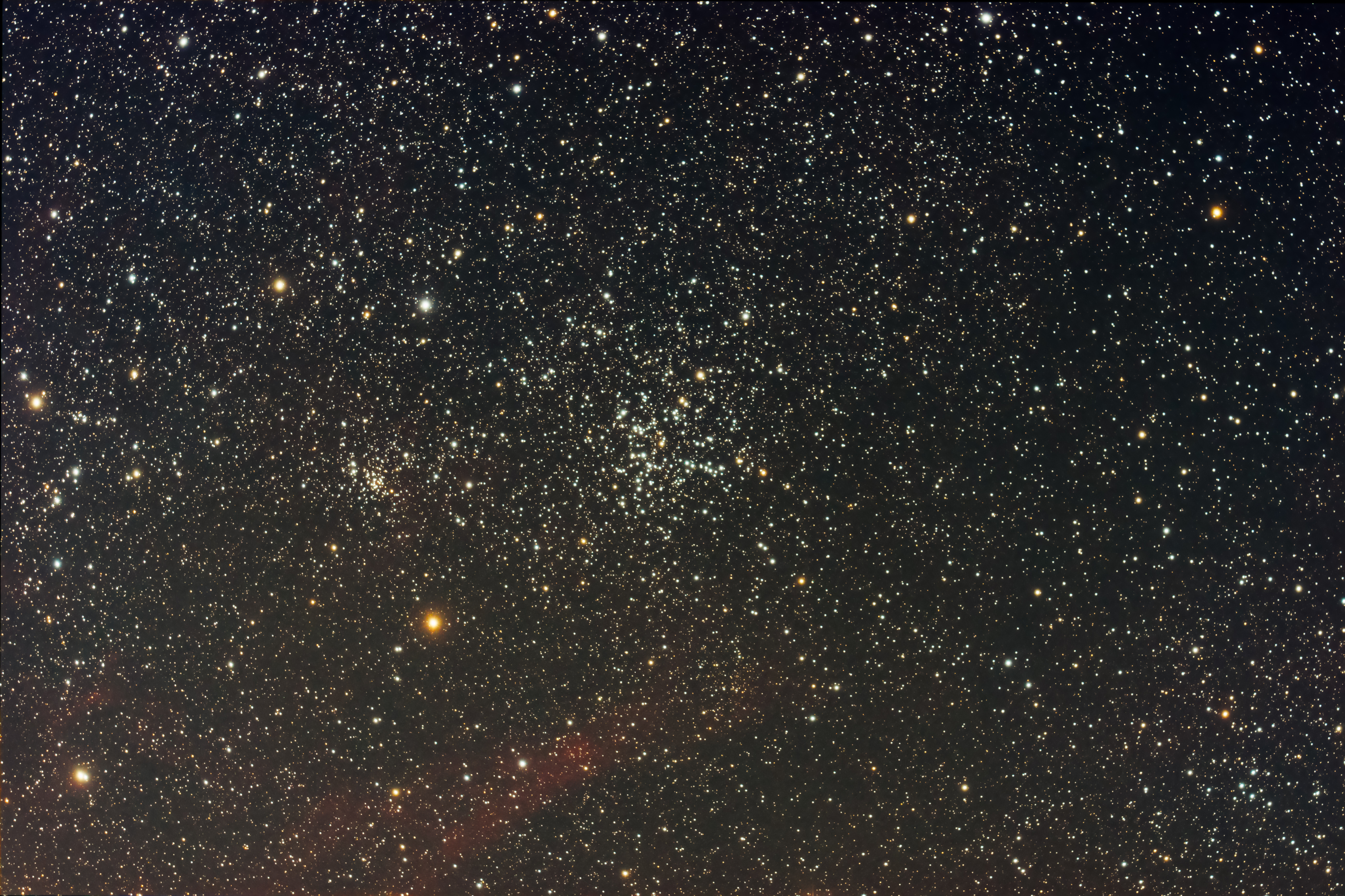 2 amas ouverts sur la photo, Messier 38 au centre et NGC 1907 à gauche.