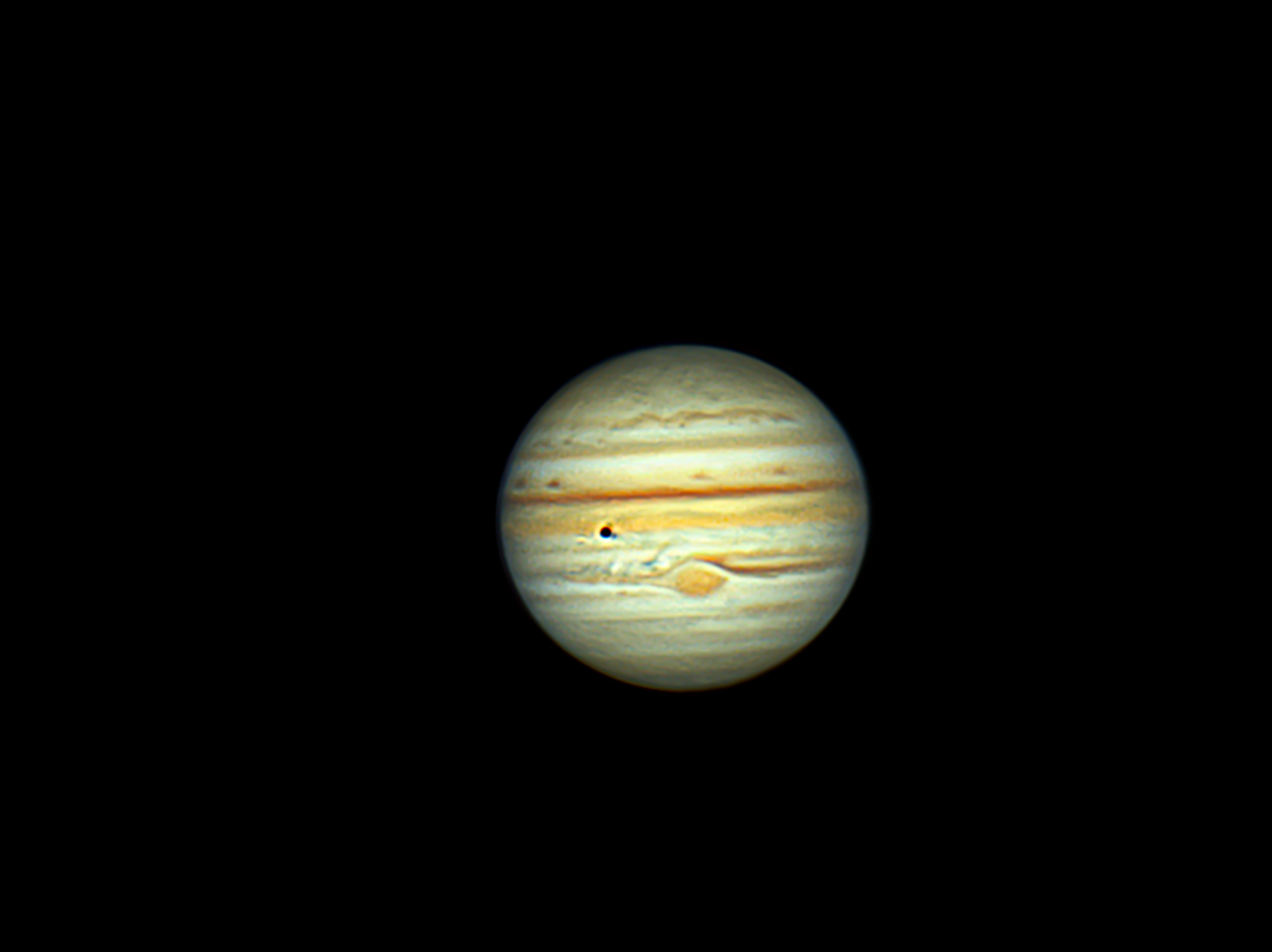On peut apercevoir Io à coté de son ombre à gauche et un peu en dessous.