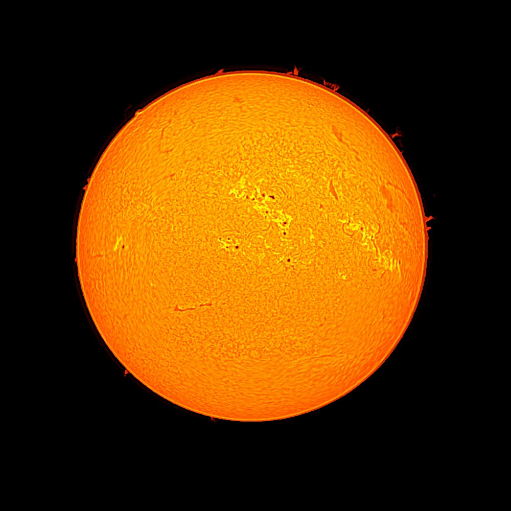 Soleil du 29 juillet 2024. Lunt 80/560 H-alpha et Filtre de blocage B1800 camera zwo asi533MC De nombreuses protubérances sur la couronne tâches sur le disque et Facules Une vidéo de 3 minutes