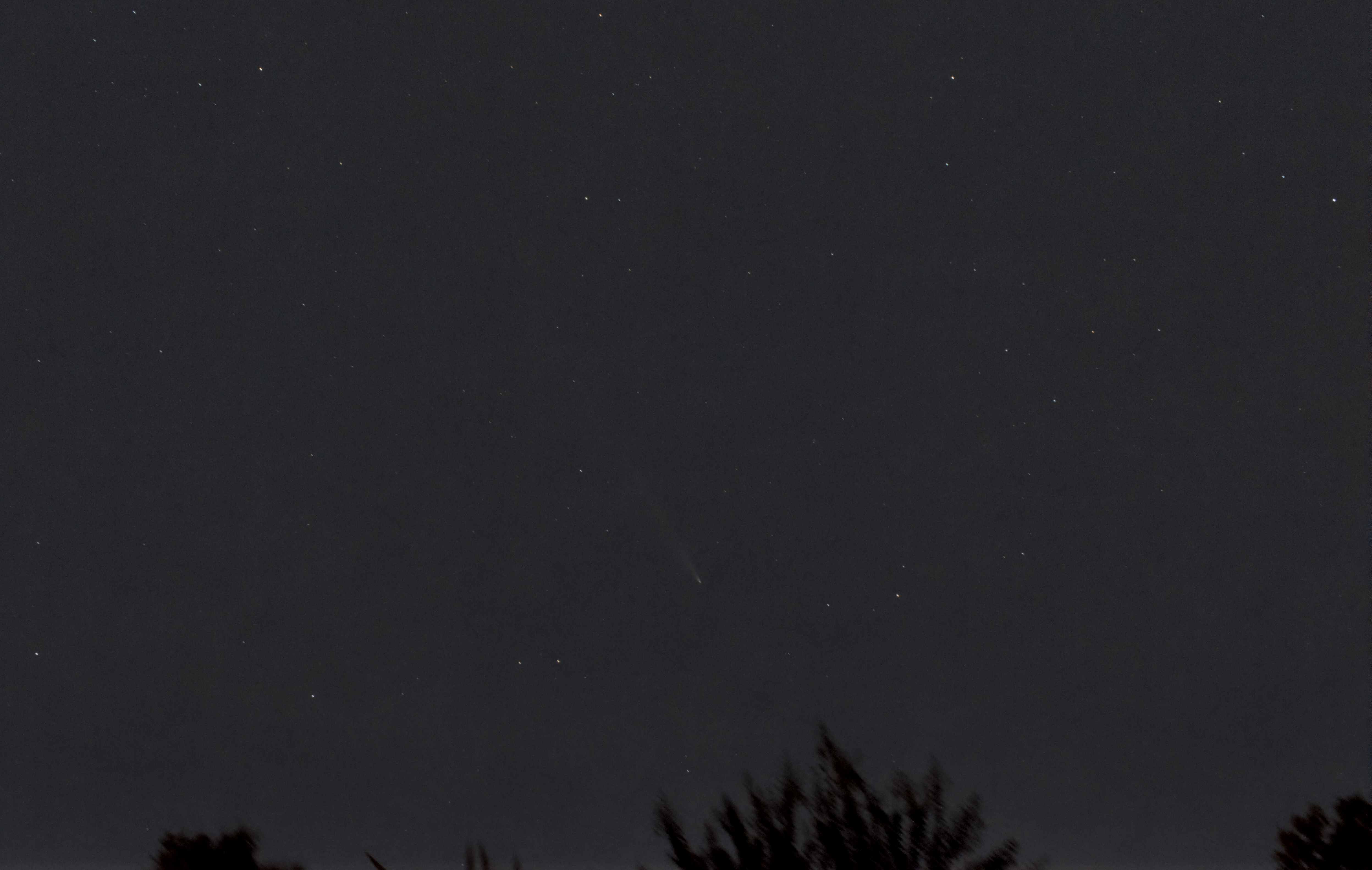 La comète a bien baissée en intensité, elle n'est plus visible à l'œil nu. Empilement de 5 poses de 15s au canon 60d avec objectif 50mm.