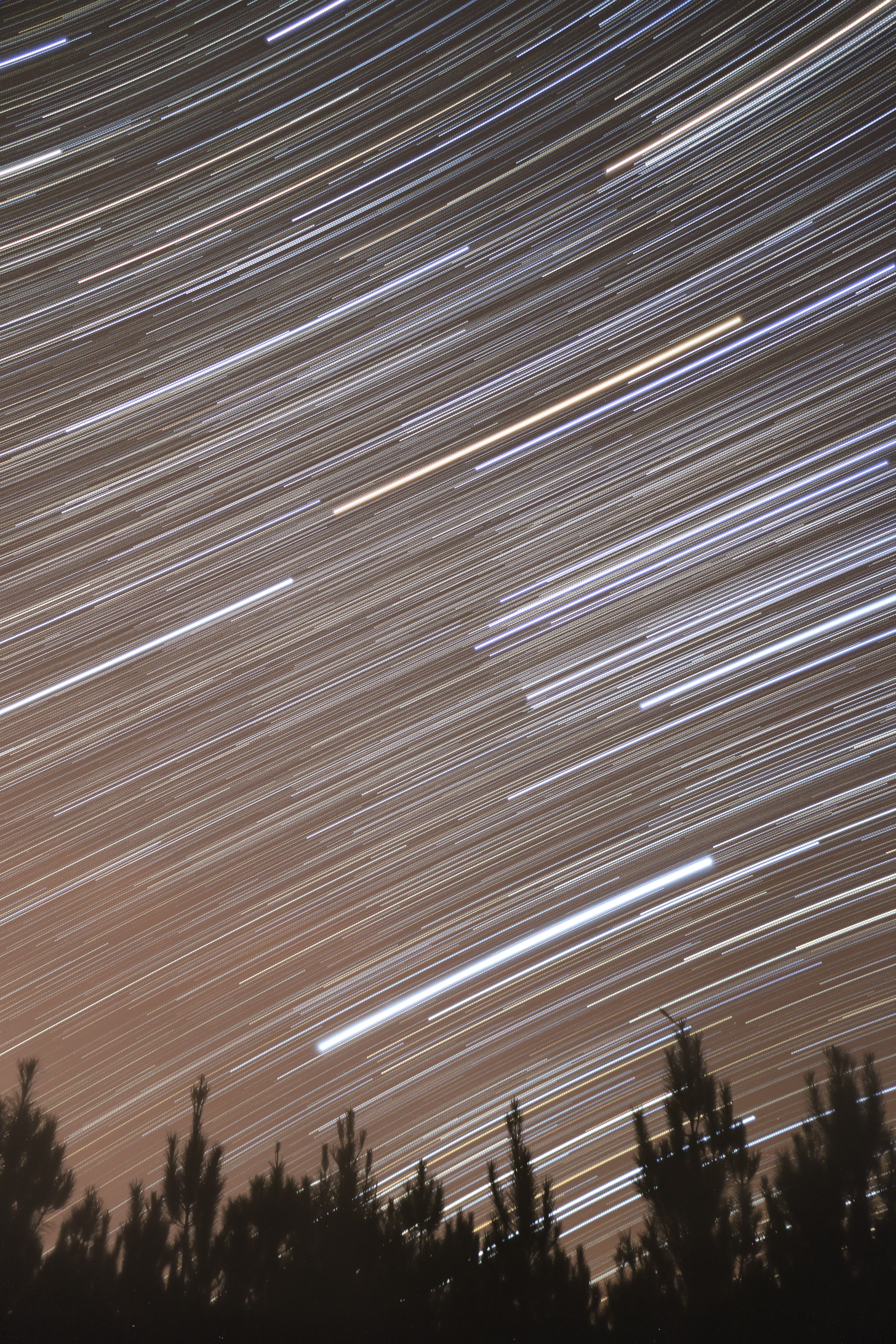 Ce filé d'étoiles permet d'apprécier la trajectoire parcourue par diverses étoiles des constellations du Grand Chien, Orion et le taureau en 1H30 en regardant le ciel vers le sud-est. La différence de couleur et de luminosité est frappante bien sur, avec Sirius la plus lumineuse en bas (blanche), ou Bételgeuse et tout en haut Aldébaran très brillantes et oranges. On peut remarquer également que toutes les étoiles du même coté de l'équateur céleste ont une courbure orientée de la même façon.