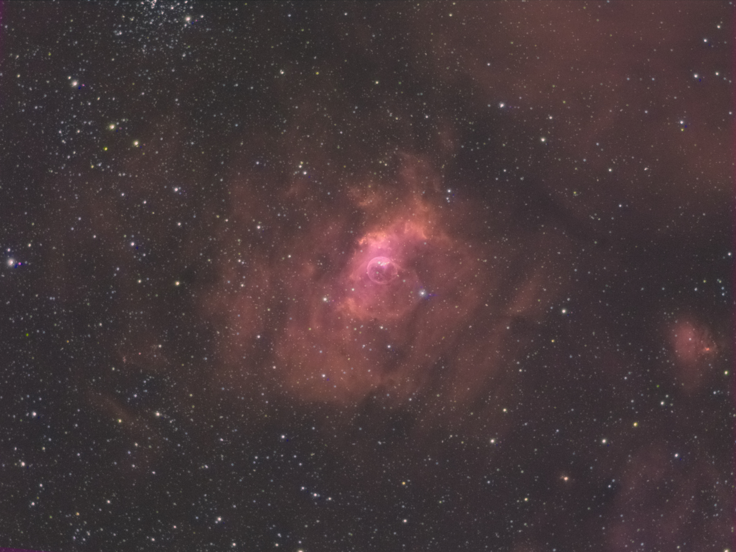 NGC7635 en couleurs (H_HSO) dont 80 mn de poses en Ha (20x4mn)