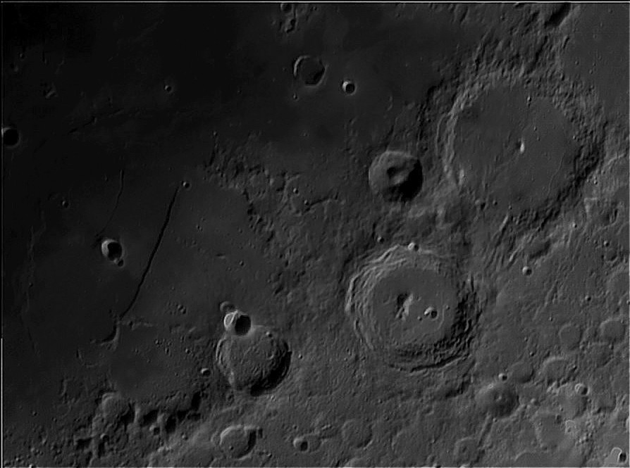 Le mur droit (à gauche) et à droite les cratères Arzachel et Alphonse